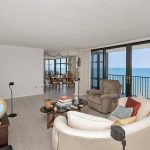 Gorgeous Ocean Front, Corner Unit at the South end of the building. Corner porch with fabulous ocean views. These views are what it is all about! Kitchen has been renovated w/ truly custom cabinets, Stainless Steel appliances including new trash compacter, granite counter tops. Newer beach sand color wood-planking tile floors through out living area and bedrooms. Owners In-Suite shower has all new tile. California Closets in the Owners Closet. Tax rolls show 1566, check for floor plan under DOCUMENTS Tab, shows floor plan & SF @1844. Buyer to verify square footage. Garage space 15G (best parking spot in garage, plus garage storage. Included with the condo is a garage space (15) prime location), and a storage unit 15G. Unit Condo monthly fees are $650, Storage Space is $16, Garage Space is $38. For more info www.BeachesRealtyGroup.com